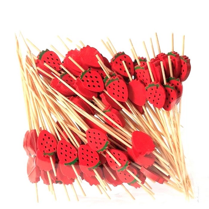 Set betisoare aperitive, GS, Bambus, 50 buc, Căpşună, Rosu