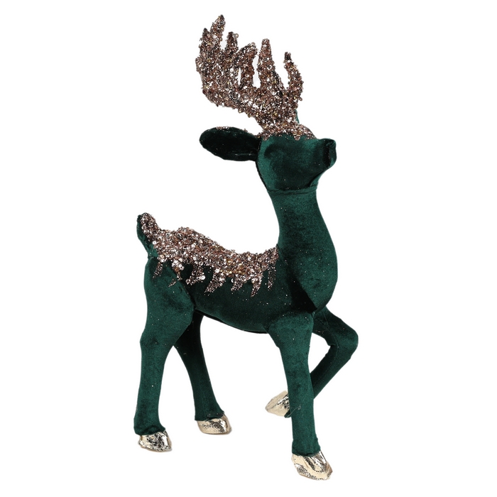 Figurina de craciun, GLOBAL CHRISTMAS, Craciun, Cerb, Verde Smarald, 20x12x40 cm, Velour