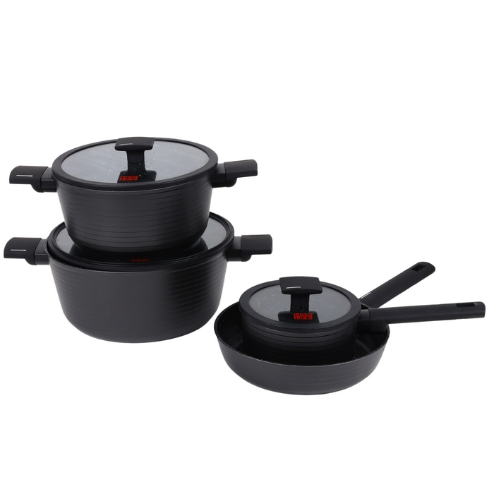 Set cratite, UCC LIFE, Aluminiu, 9 piese, Antiaderent, Electrica,inductie,gaz, Negru