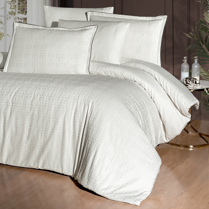 Set lenjerie de pat, La Romano, 6 piese, 240x260cm, 200x220cm, 50x70cm, Satin, Crem