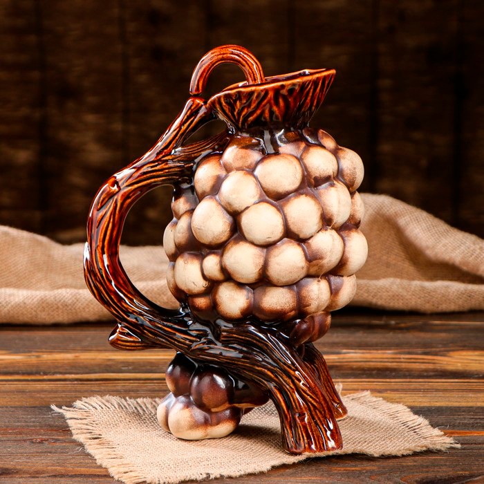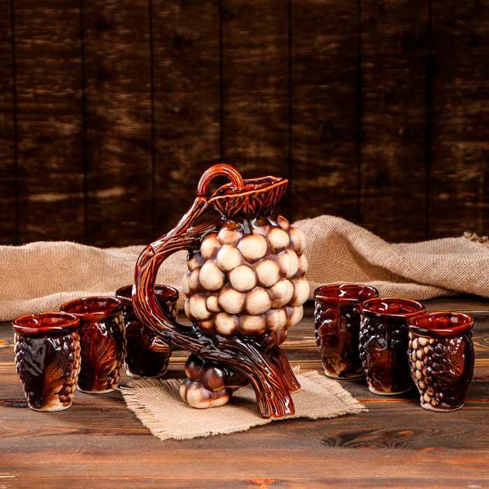 Набор для вина, ORIENS, Керамика, 1 Л, Гроздь винограда, Резка, 6 стаканов, С крышкой
