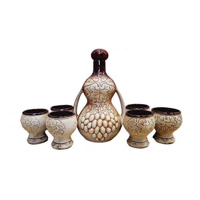 Набор для вина, ORIENS, Керамика, Амфора, 1.6Л, Резка, 6 стаканов, С крышкой