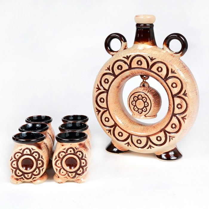 Набор для вина, ORIENS, Керамика, Резка, 6 стаканов, С крышкой