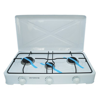 Газовая плита, FEMAS, Белый, 3 отсеков, С крышкой, Эмалированный Сталь