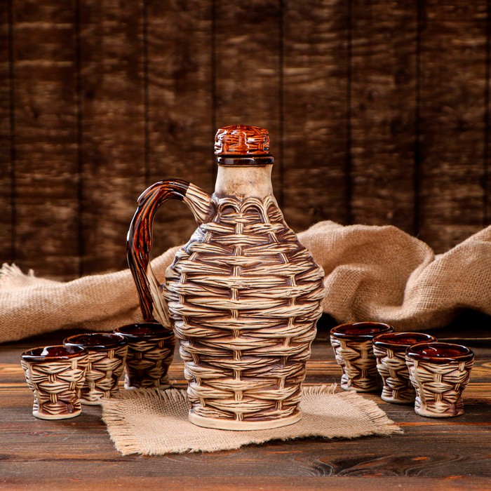 Набор для вина, ORIENS, Керамика, Молдова, 1 Л, Резка, 6 стаканов, С крышкой