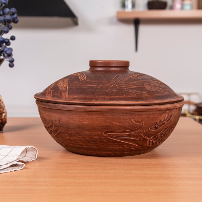 Горшок для печи n.1, ORIENS, Колос, 4Л, Керамика, C рисунком, Коричневый