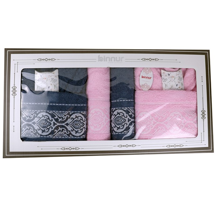 Набор халатов и полотенец, MK HAVLU, 6 предметов, Хлопок, 70x140 см, 50x90 cм, Стандарт
