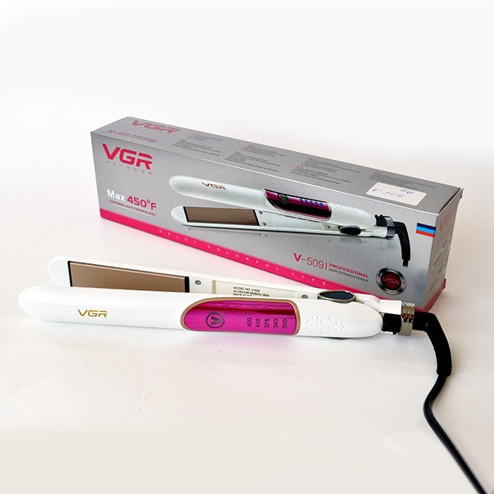 Утюжок для волос, VGR, Керамика/Пластик, Белый/Розовый, 230 C, Сеть