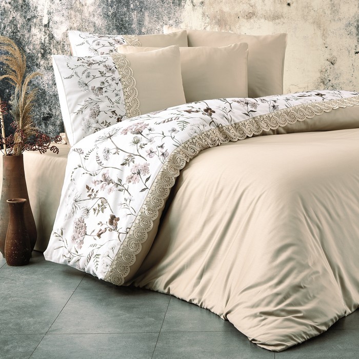 Спокойный сон необходим для хорошего дня. Выбранное вами белье может иметь значение с точки зрения комфорта, а современный принт и яркие цвета придают вашей спальне свежий и стильный вид. Постельное белье "NAZENIN" обеспечивает циркуляцию воздуха, обеспечивает превосходный комфорт, дополнительный стиль и элегантность и выдерживает многократное использование и стирку, не изменяя его внешний вид или качество. Материял : Хлопок Простыня : 240x260cм Пододеяльник : 200x220cм Наволочка 2 шт. : 50x70cм Состав : Double Size Цвет : Бежевый