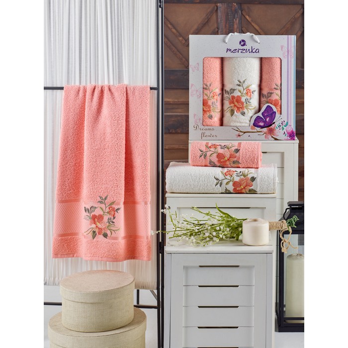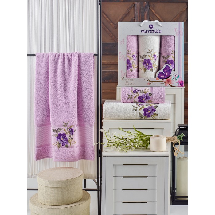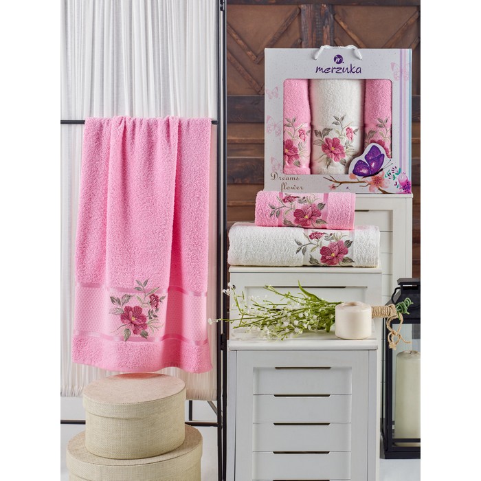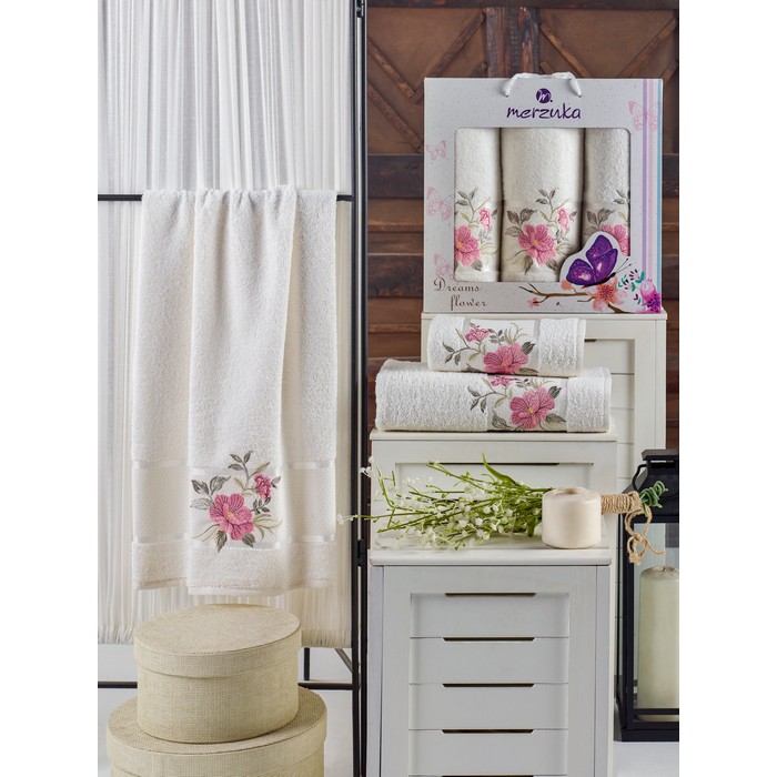 Комплект из 3 полотенец, MERZUKA, Dreams Flower, 50x90 cм, 70x140 cм, Цвета в ассортименте, Хлопок