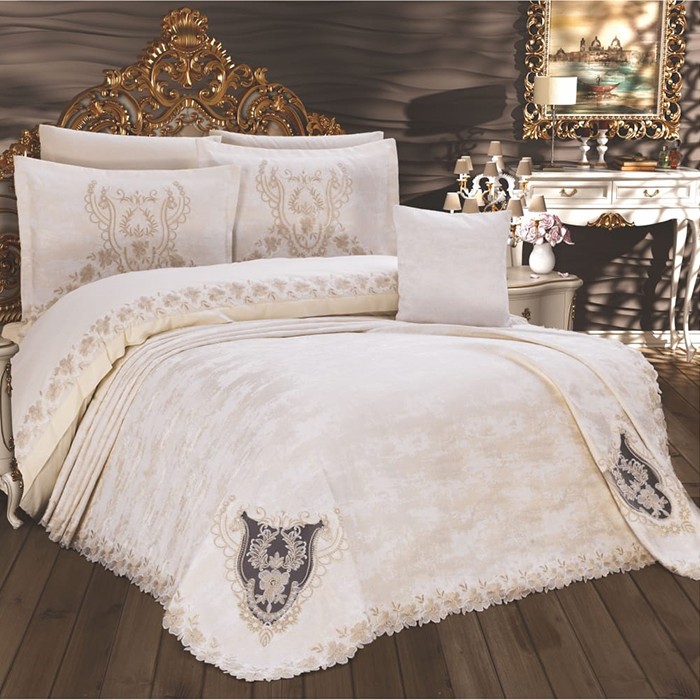Набор постельного белья, IRINA HOME, King Size, 240x260cм, 220x240cм, 240x260cм, 50x70cм, 60x80cм, 40x40cм, Капучино, 8 предметов, Хлопок