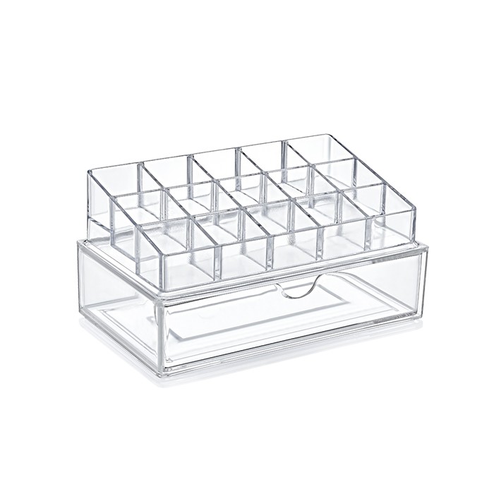 Тебе трудно держать всю свою косметику организованной? Отделенный пластиковый органайзер будет очень полезен. Выдвижные ящики, полезные для хранения наборов для макияжа, а меньшие пространства вы можете использовать для кистей или помад.
