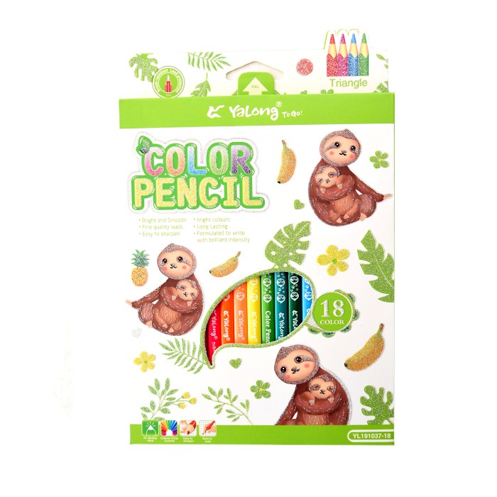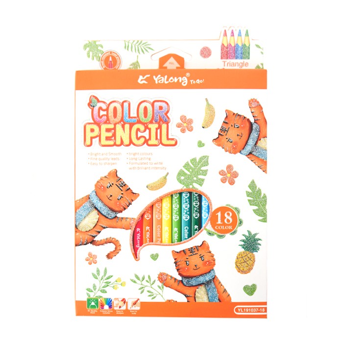 Набор цветных карандашей, YALONG, Цветной, 18 цветов, Дерево