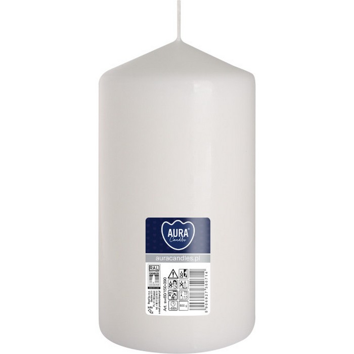 Декоративная свеча, BISPOL, Белый, 15см, 8см, Парафин, 66 часов, 600гр