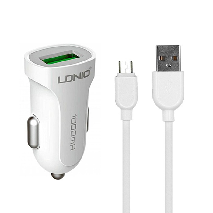 Автомобильное зарядное устройство, LDNIO, Микро USB, 1 A, 5 Вт, Белый