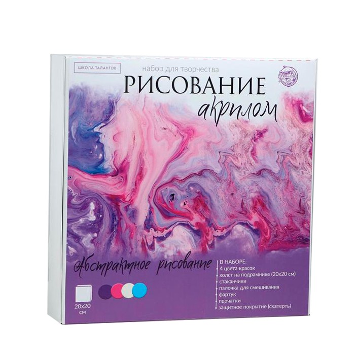 Набор для рисования в технике флюид арт, Школа талантов, Краска/Бумага, 540гр, 20см, 20см, 3+