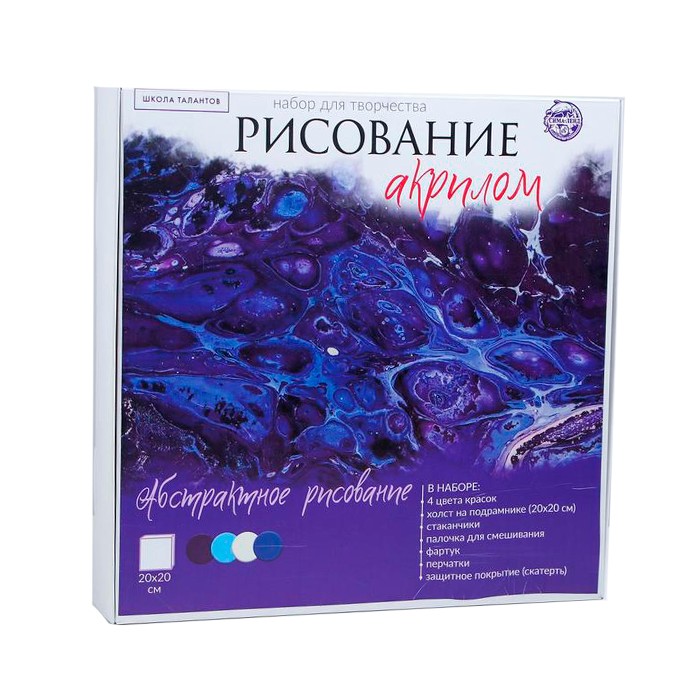 Набор для рисования в технике флюид арт, Школа талантов, Краска/Бумага, 20см, 20см, 3+