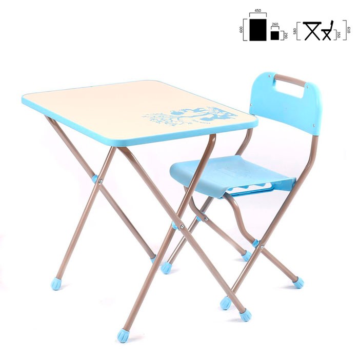 Комплект складной мебели с классическим дизайном и рисунком в стиле «Ретро» поможет обустроить рабочее место ребёнка. В собранном виде комплект не занимает много места и позволяет сэкономить пространство в комнате. За ярким столиком малыш будет с удовольствием готовиться к школе: узнавать новое и учиться писать, считать.