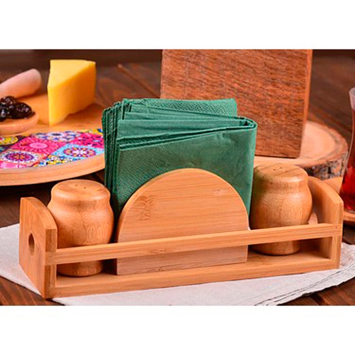 Набор для специй и салфетница, BAMBUM, Elcoda, Бамбук, 4 предметов, 26см, 6.5см, 8см