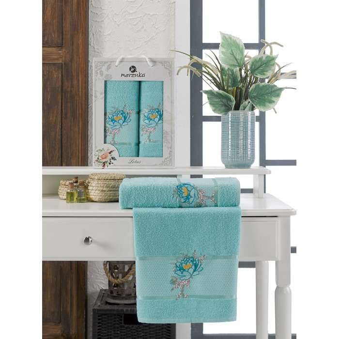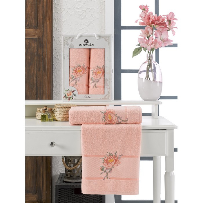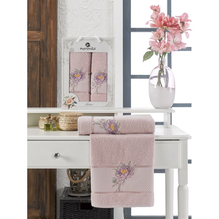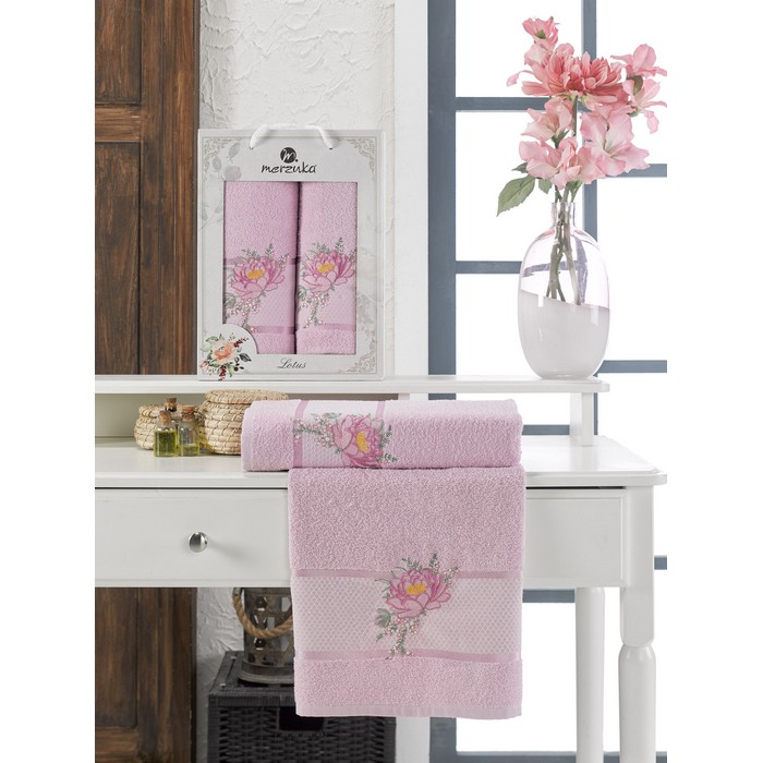 Набор 2 полотенца, MERZUKA, Lotus, 50x90 см, 70x140 cм, Хлопок, Различные Цвета