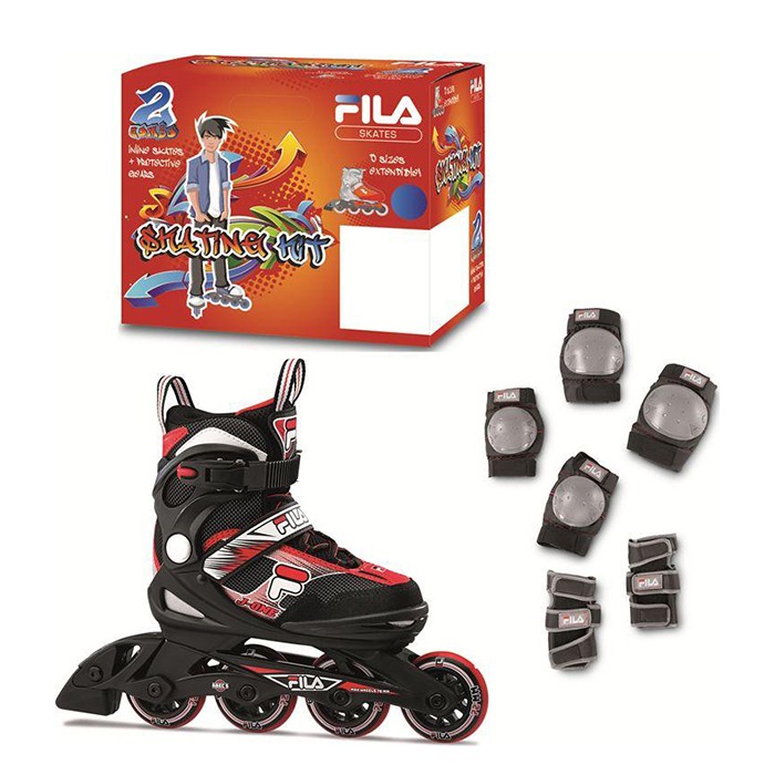 Набор роликов с защитой, FILA, J-ONE COMBO 2, 32-36, Черный / красный