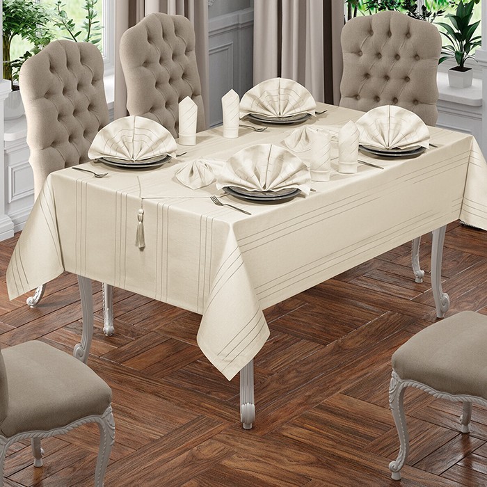 Набор скатерть с салфетками, BIRHOME, 2.2м, 1,60м, 8 человек, 9 предметов, Кремовый, Полиэстер