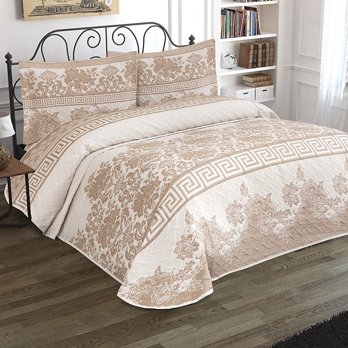 Набор покрывало с наволочками, BIRHOME, Carmen, 240x260cм, 60x80cм, Кофейный, Полиэстер