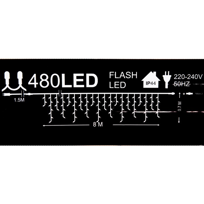 Светодиодная гирлянда сосульки, DECOLED, 480 лампочек LED, 8м, Теплый Белый, Белый, Интерьер/Экстерьер, IP65, 230 B