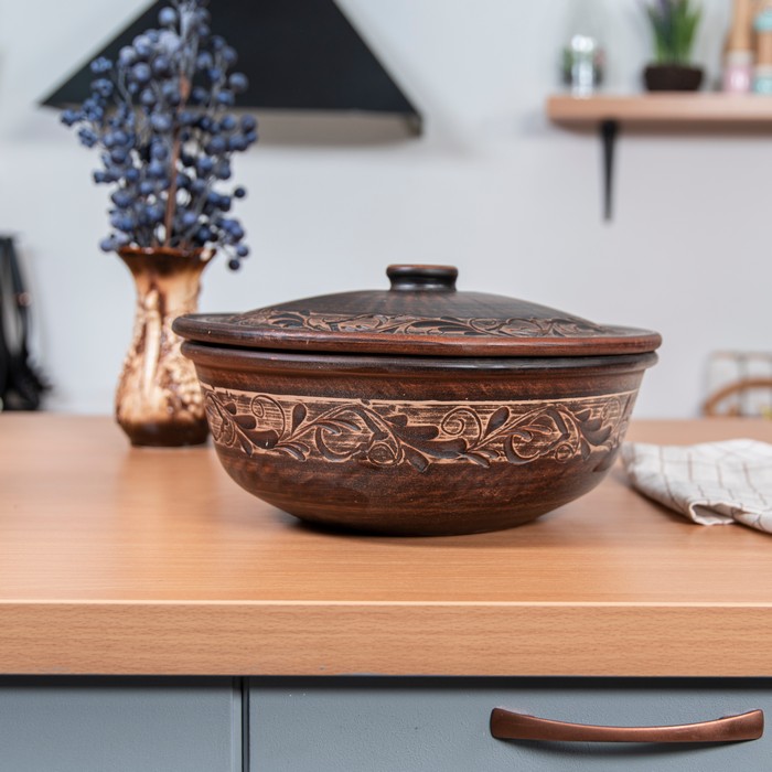 Горшок для печи, ORIENS, Argila, Ангоб, Лист, С крышкой