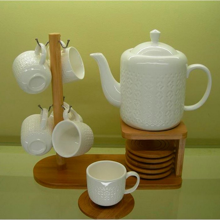 <strong> Набор из 6 предметов с бамбуковой подставкой </strong> Набор дополняет вашу коллекцию посуды и привносит особую эстетическую нотку в сервировку стола. Чашки отличаются тонкостью фарфора, а подставка изготовлена из бамбука, обеспечивающего прочность.