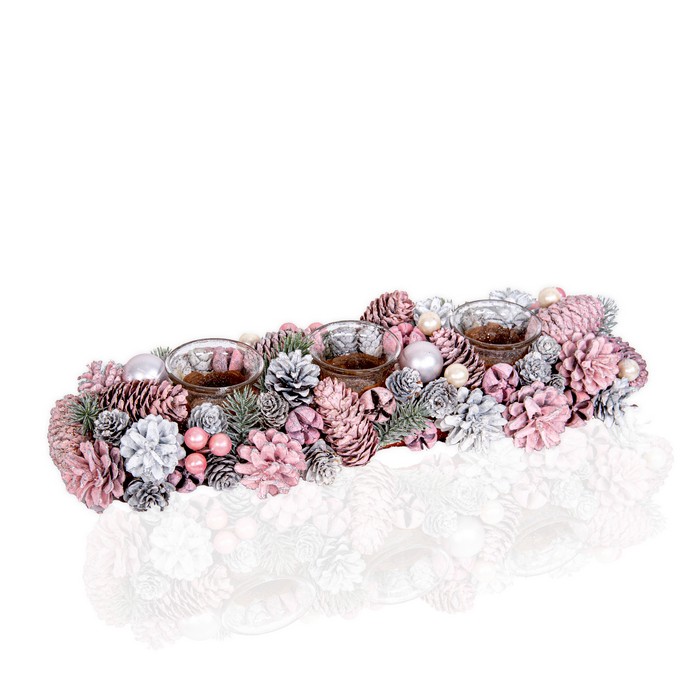 Декоративный подсвечник, GLOBAL CHRISTMAS, Розовый, 41см, 15cм, 8см