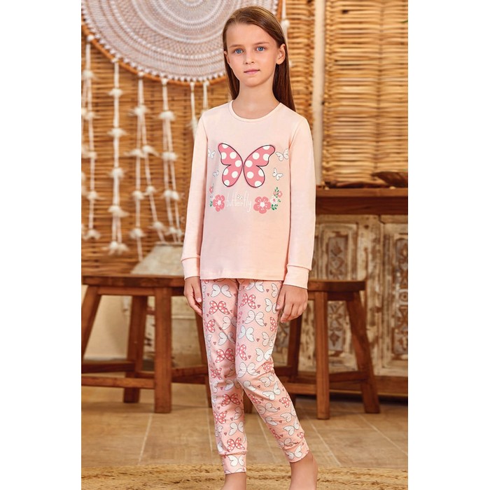 Пижама для девочек, BAYKAR, 95% Хлопок/5% Эластан, 10 лет, 140cм, Бежевый