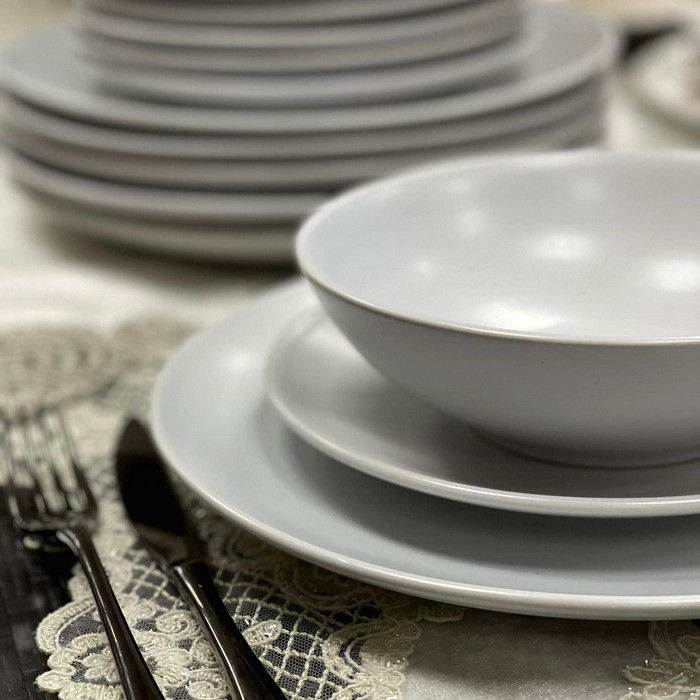 Столовый сервиз, GS TABLEWARE, Керамика, Светло- Серый, 18 штук, 27cm, 20cм, 18cм