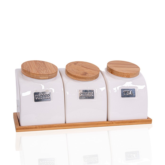 Набор емкости для специй, GS, Керамика, 3 предмета, Белый