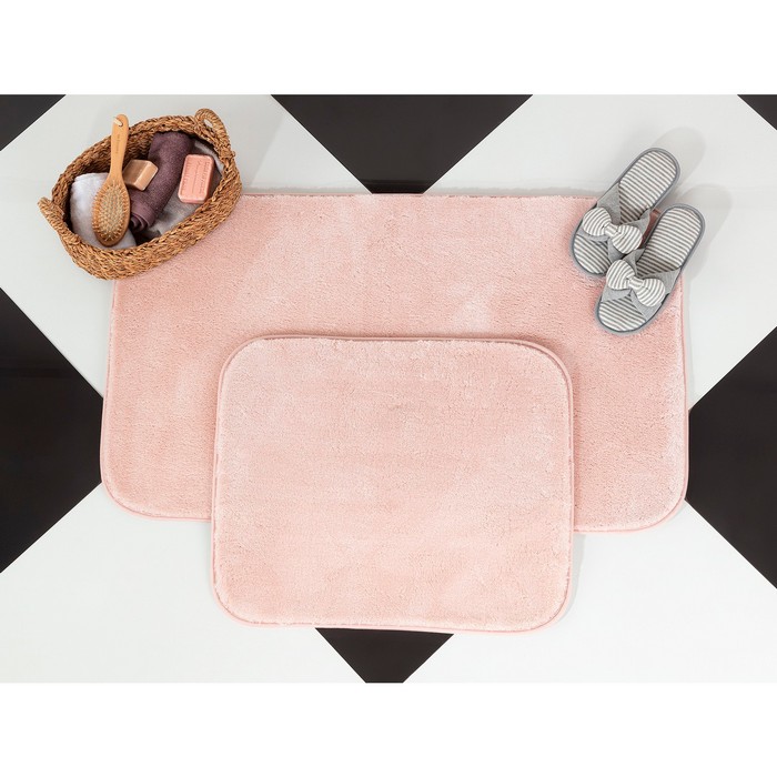 Набор из 2 ковров для ванной, EROZPA, Полиэстер, 60x100см, 50x60 см, Пудра