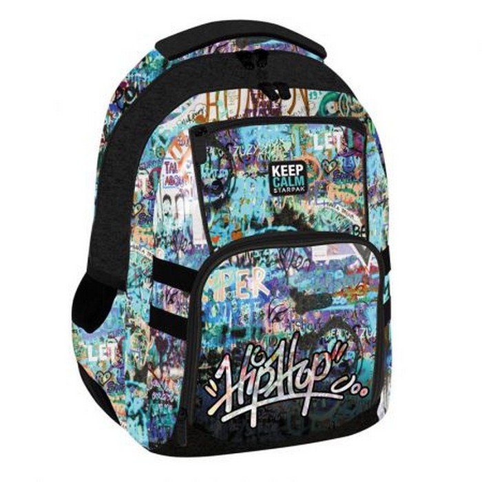 Рюкзак в стиле граффити подойдет, когда нужно носить с собой разные вещи, расходные материалы, книги и ноутбук. В нем есть отделение для хранения ноутбука, 3 небольших передних отделения и 2 сетчатых боковых кармана для бутылок с жидкостью.