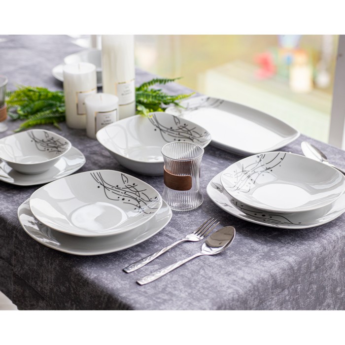 Столовый набор 18шт, BRILLIANT, Керамика, Белый, C рисунком, 26.5 cm, 23cm, 20.5 cm, 15.5cm, 30.5cm, 23cm