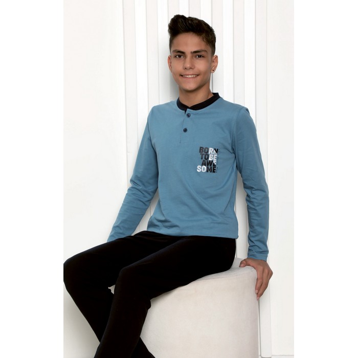 Пижама для девочек, OSTAS, Хлопок, Темно-синий, 7-8 лет
