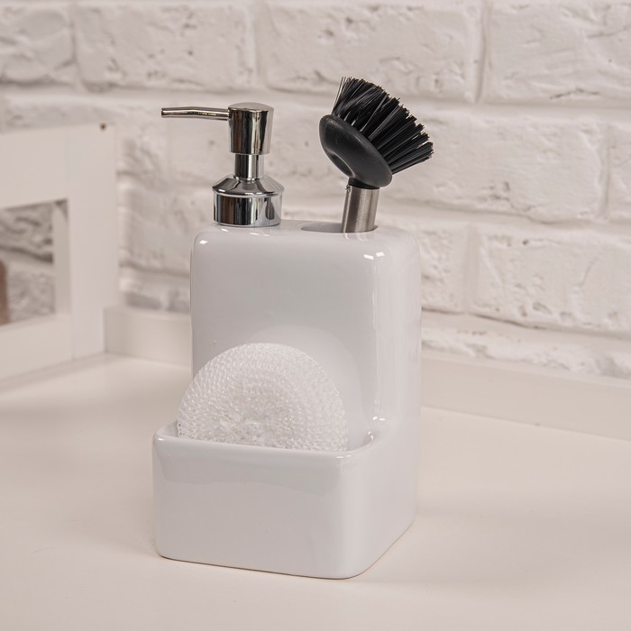 Дозатор для жидкого мыла с губкой, GS, Керамика, Белый