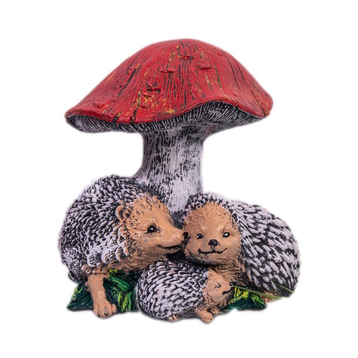Садовая фигура ежи под мухомором рисованные, ORIENS, Гипс, Серый, 30X29X20CM