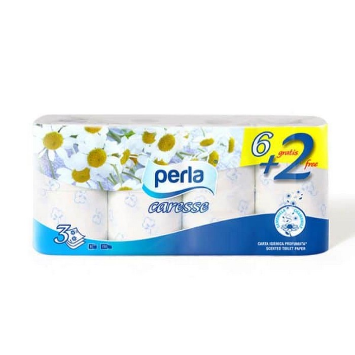 Туалетная бумага, PERLA, 8 рулонов, 3 слоя, Chamomille