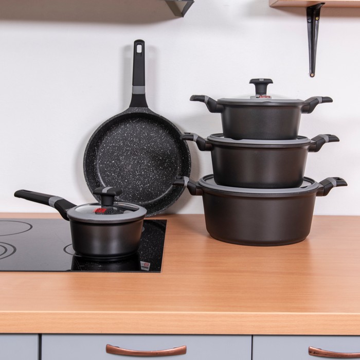 Набор кастрюль 9 штук, UCC LIFE, Алюминий, 16cm/28cm, Электрический, индукционный, газовый, Антипригарный