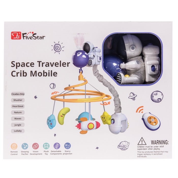 Музыкальная игрушка для кроватки, STEM, звук, 7 частей, Пластик, 0+