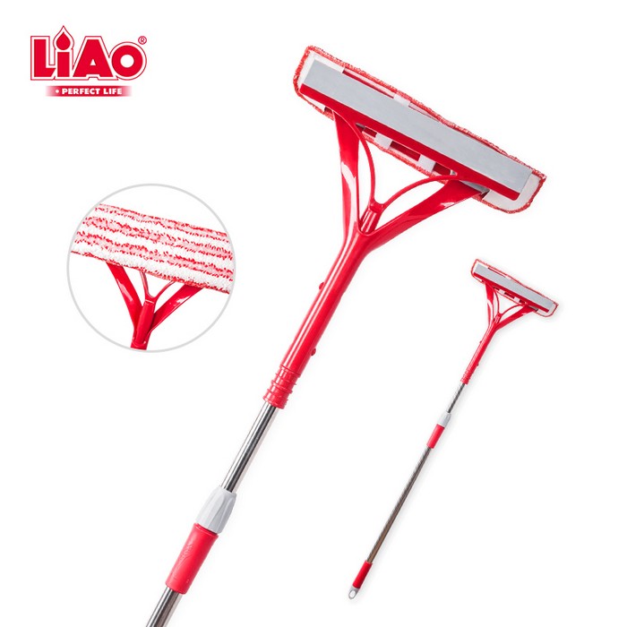 Скребок для окон, LiAo, Пластик/микрофибра/резина, Зеркало/Стекло, Красный, 25см