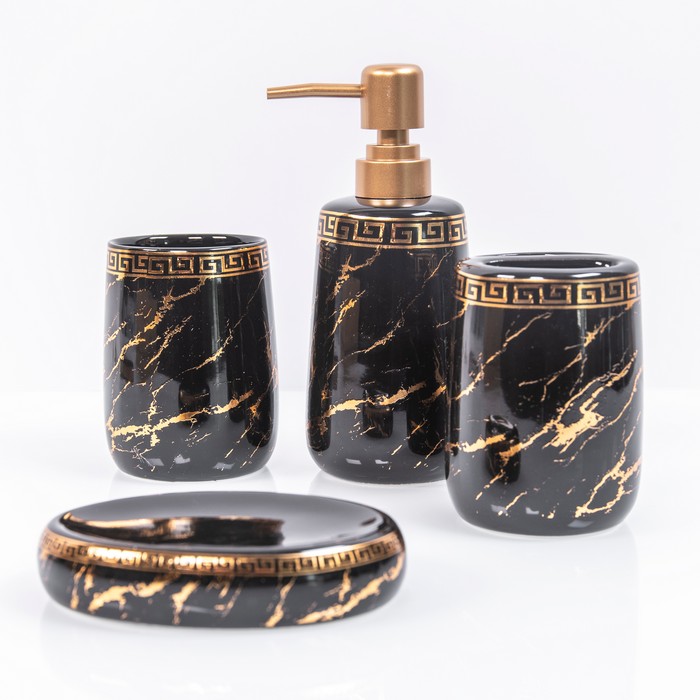 Набор аксессуаров для ванной, GS, Керамика, 4 штук, Черный/Золото