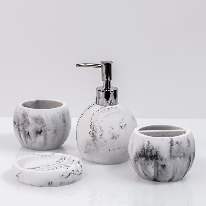 Набор аксессуаров для ванной, GS, 4 штук, Керамика, Белый /Черный