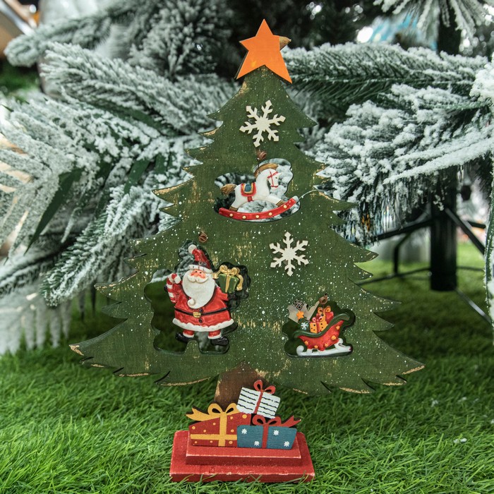 Рождественское украшение, GLOBAL CHRISTMAS, Елка, 31см, Дерево/Пластик, Разноцветный