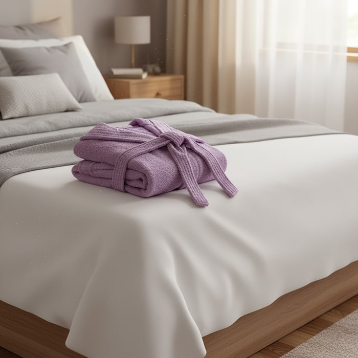 Детский халат, MK HAVLU, 10-12 лет, Хлопок, сиреневый, Съемный пояс, Турция