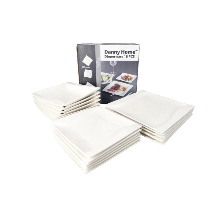 Столовый сервиз, DANNY HOME, 18 шт, Фарфор, 20.3см, 21cм, 25.4см, Белый