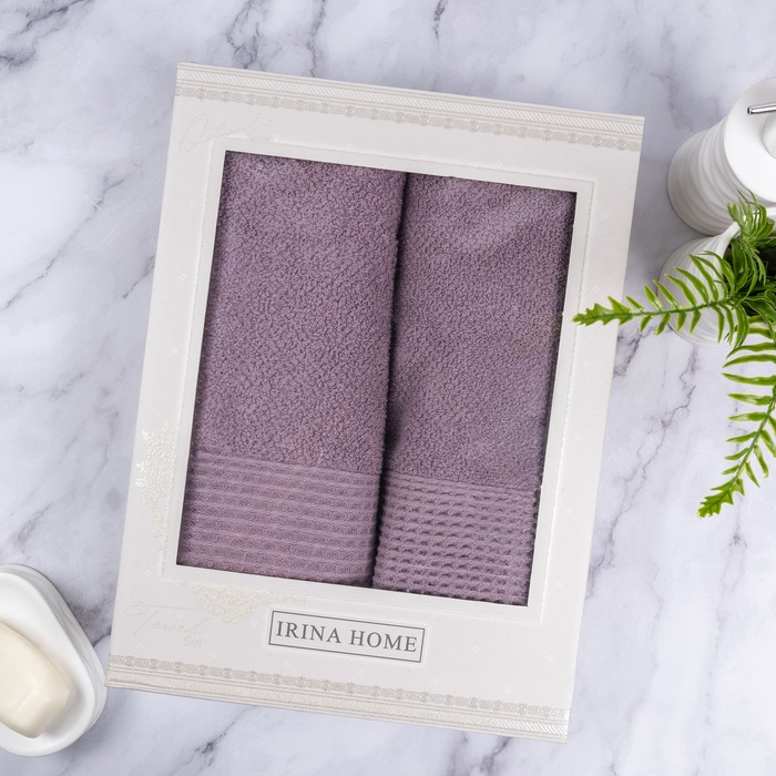 Набор 2 полотенца, IRINA HOME, Хлопок, 70x140 cм, 50x90 см, сиреневый